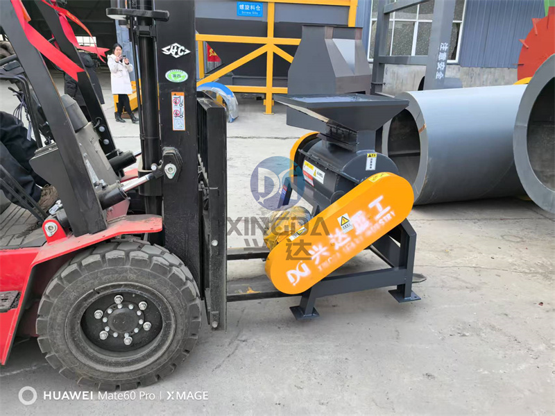 為泰安客戶打造的有機肥尿素粉碎機與小型圓盤造粒機正在裝車中:尿素粉碎機系利用高速轉動的滾筒與機板之間的間隙進行研磨切割,間隙的大小可決定物料的粉碎程度,尿素進 入機體后撞擊機壁及擋板而破碎,再通過輥筒與機板齒條之間研磨成粉狀。
